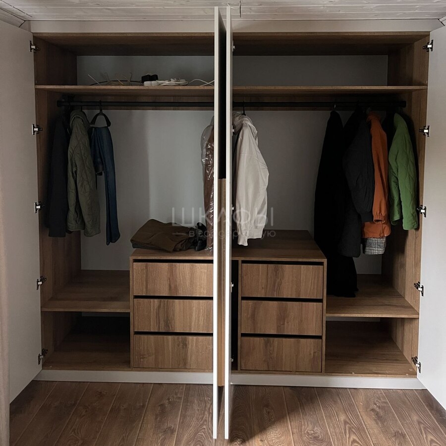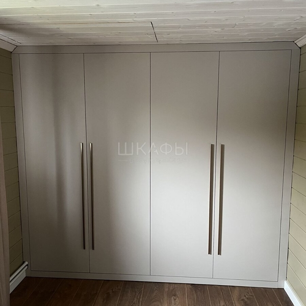 Традиционный и популярный вариант организации пространства для одежды. Такие гардеробные характеризуются закрытыми дверьми, которые открываются наружу, что обеспечивает удобный доступ сразу ко всему содержимому.