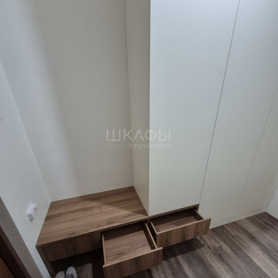 Раздвижные двери-купе сэкономят место в узком коридоре, но отнимут до 10 см у самого шкафа. Оптимальная глубина гардероба для верхней одежды — 60 см. При выборе раздвижной системы общая ширина модуля под одежду будет заметно больше.