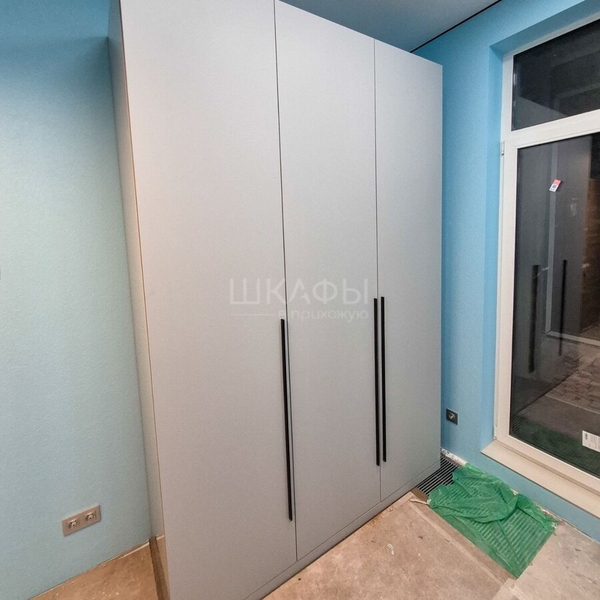 Шкаф распашной для одежды в прихожую с антресолями из МДФ эмали с интегрированными ручками