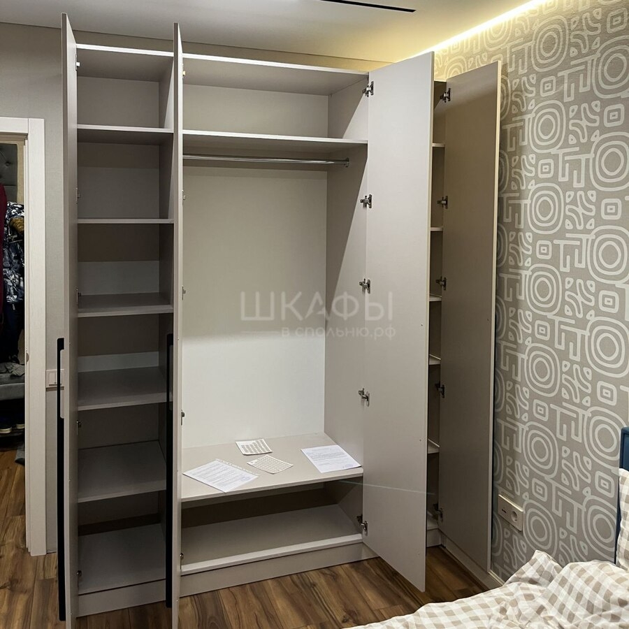 Распашной шкаф в спальню по ул. Московская. Позволяет максимально эффективно использовать пространство, а лаконичный дизайн в светлых тонах легко впишется в любой интерьер