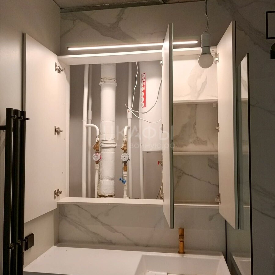 Шкаф зеркальный в ванную комнату для коммуникаций