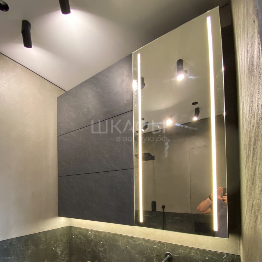 Зеркальный шкаф в ванную с подсветкой по периметру фасада